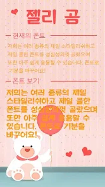 A fonte Jelly Bear para FlipFont requer Android 13.0 ou superior. A versão atual do programa é 56.0 e você só pode executá-lo em coreano.